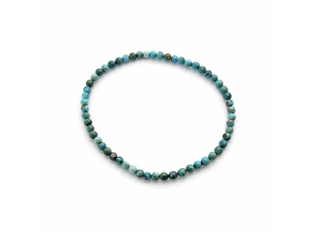Prírodný tyrkys so svojou unikátnou modro-zelenou textúrou je silný energetický čistič a zosilňovač osobnej pravdy. Už na prvý pohľad zaujme svojou pestrosťou a kresbou, ktorá symbolizuje odstránenie komunikačných bariér a prepojenie s vyšším vedomím. Tento náramok je vytvorený pre tých, ktorí chcú posilniť svoju intuíciu a nájsť jasné odpovede pri vyjadrovaní svojich myšlienok a pocitov.