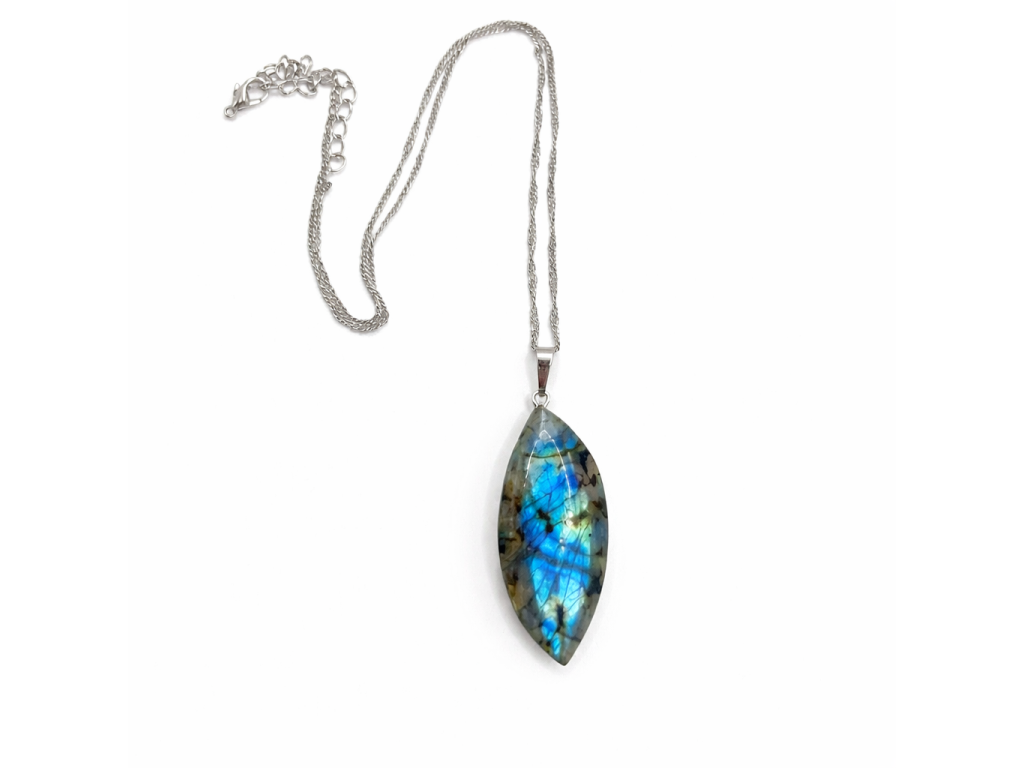 Labradorit je považovaný za kameň mystiky a transformácie. Jeho krása sa naplno prejaví až pri pohybe, kedy pod určitým uhlom svetla odhalí svoje skryté modré, zelené či zlatisté odlesky. Tento prívesok nie je len ozdobou, ale nástrojom, ktorý pomáha prepojiť naše vedomie s vyššími spirituálnymi sférami.