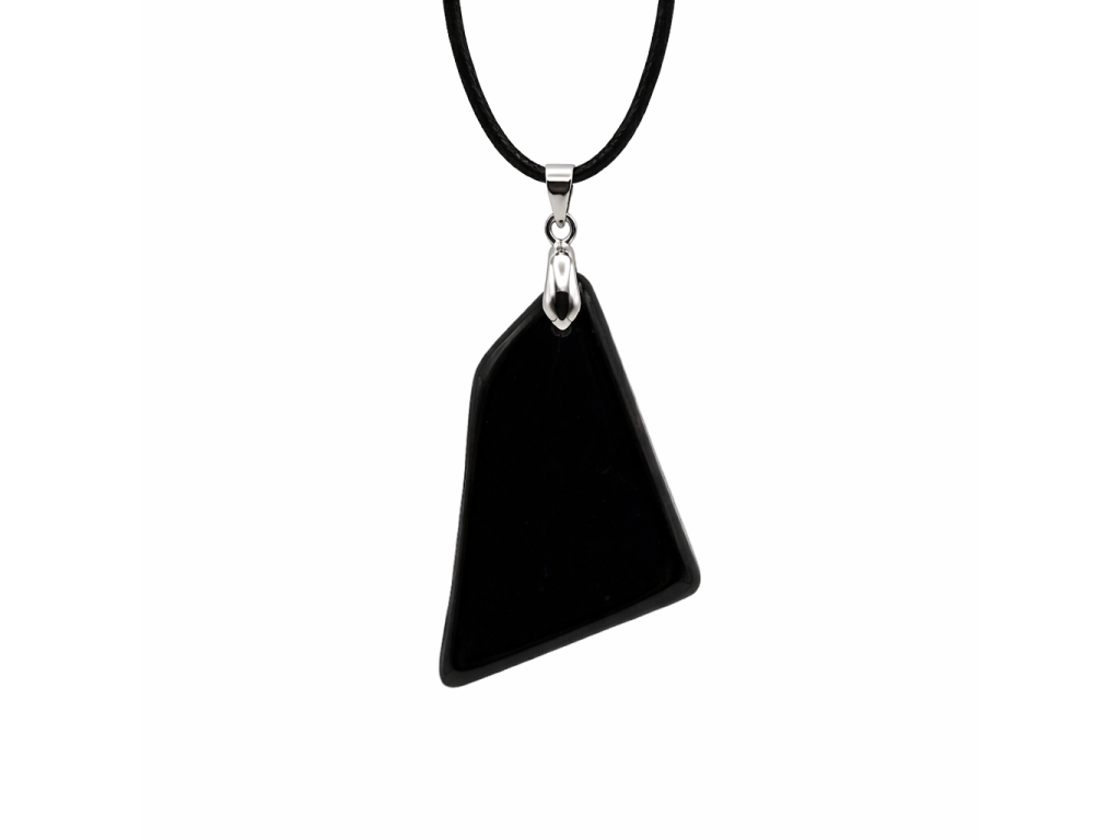 Prívesok vyniká svojím hladkým, sýto čiernym povrchom s matným až pololesklým nádychom. Asymetrický tvar dodáva šperku dynamiku a moderný ráz. Je zavesený na čiernej šnúrke, ktorá podčiarkuje jeho naturálnu silu a robí z neho univerzálny unisex doplnok, ktorý sa hodí k akémukoľvek štýlu.